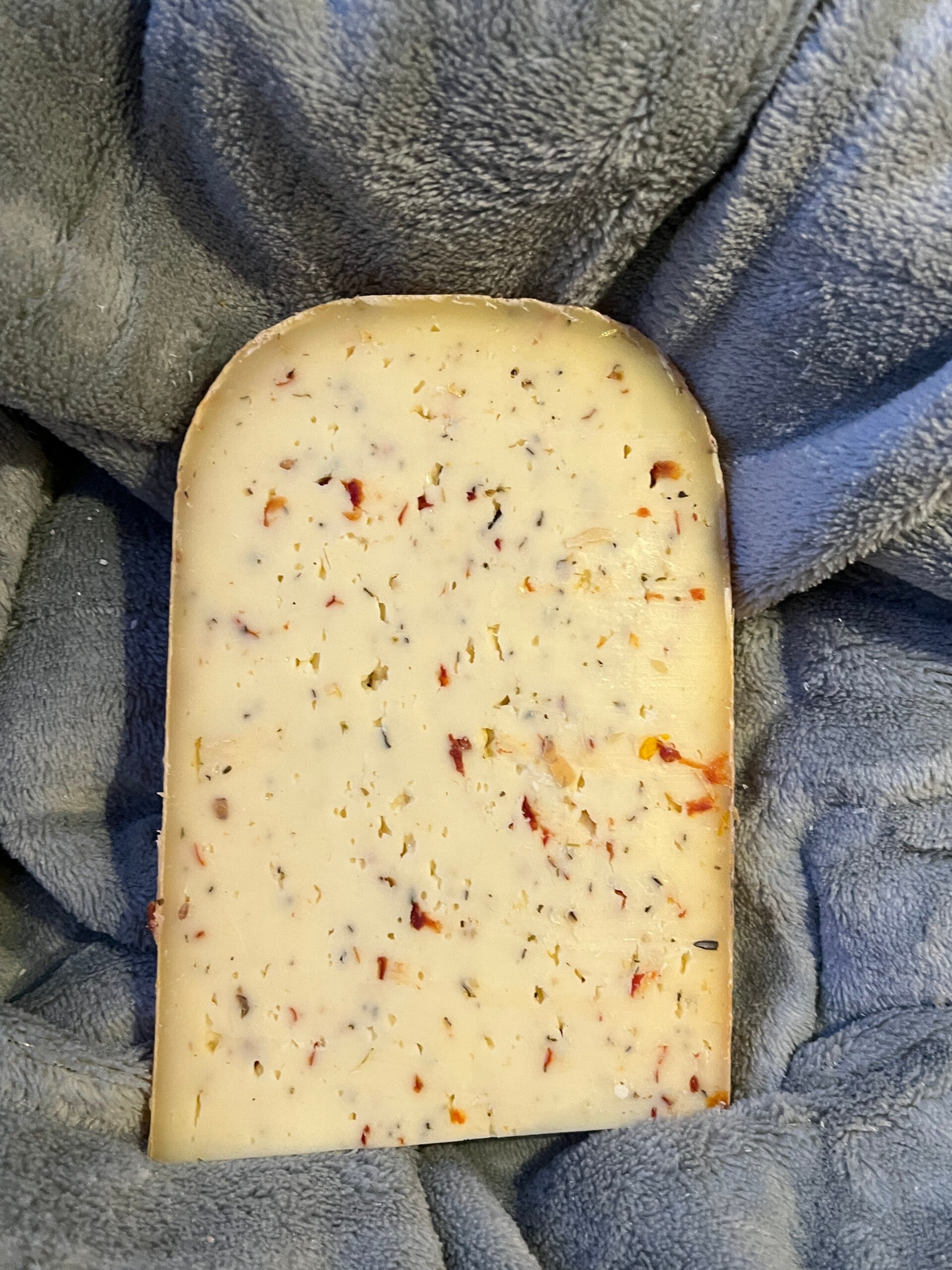 Ingrediënten: Gethermiseerde melk, zuursel, stremsel, tomaat, paprika, knoflook, ui, basilicum, tijm, peper.