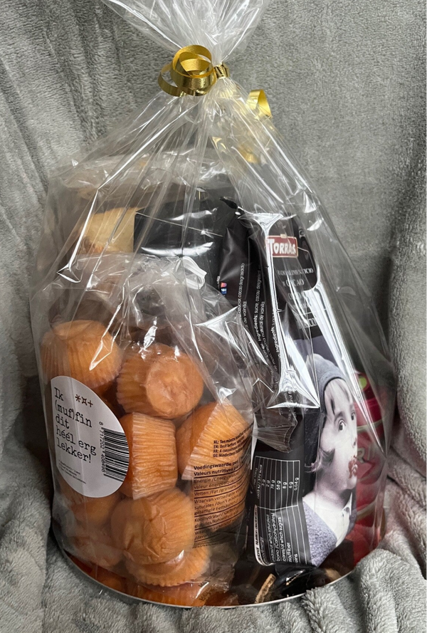 Een heerlijk winter pakket om warm van te worden! Met muffins, cacao poeder om warme chocolademelk mee te maken, boerenbeschuit en de lekkerste appelstroop!